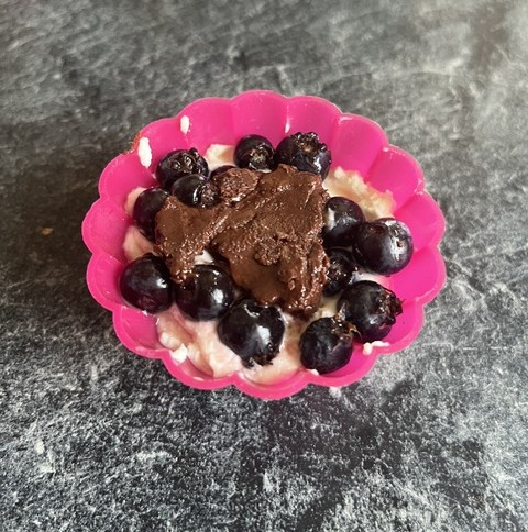 - Add fruit of your choice on top of the cottage cheese mixture – e.g., blueberries (pic 3 & 4).
